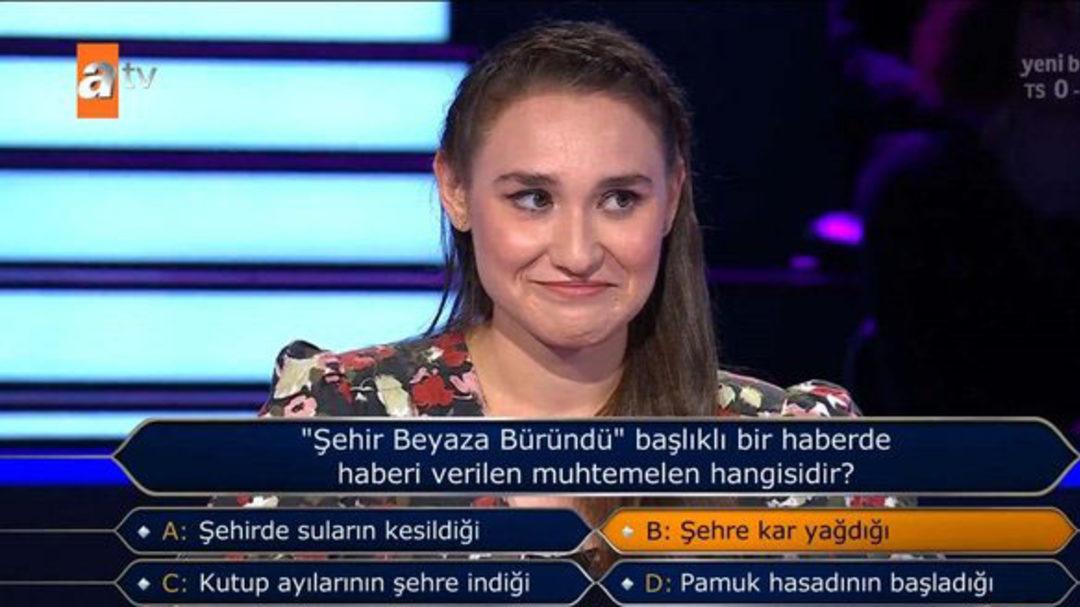 Yarışması soru karşısında çekilme hakkını kullanarak 50 bin TL ile yarışmaya veda etti.
