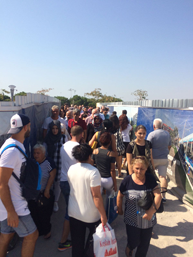 Gazetem İzmir - İzmir Büyükşehir Belediyesi tarafından Konak’ta yapımı devam eden tramvay çalışması sebebiyle Konak sahilinden Kemeraltı ve Saat Kulesi yönüne giden yürüyüş yolu kapatılmıştı. Bu yola alternatif olarak açılan koridorun dar olması vatandaşın özellikle vapur inişlerinde sıkışıklık yaşamasına sebep oluyor. Yazın kavurucu sıcak günlerinden beri koridoru kullanmak zorunda bırakılan bir vatandaşımız tarafından WhatsApp ihbar hattımızı gelen şikayet görüntülerini sizlerle paylaşıyoruz.