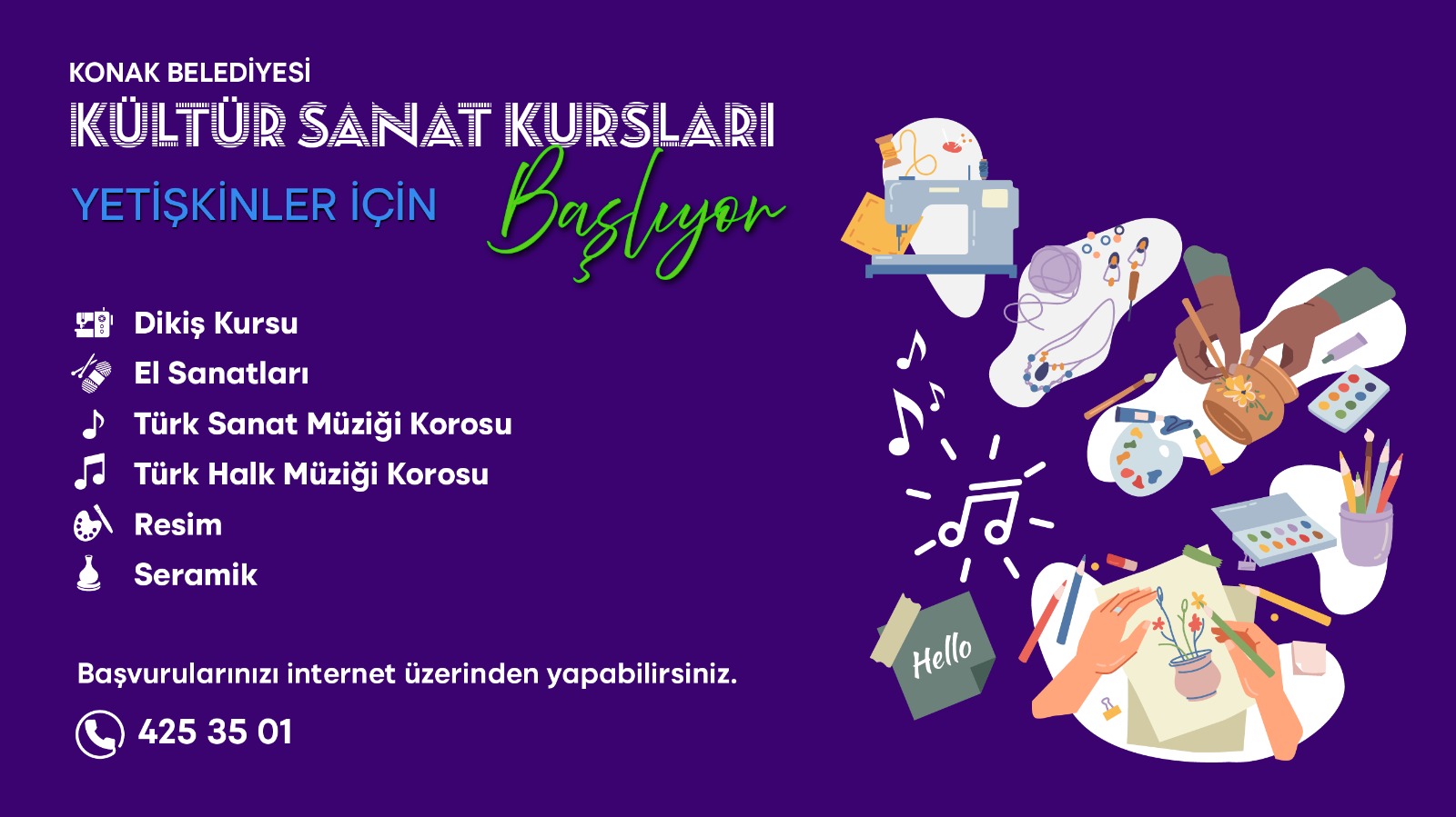 Konak Belediyesi, yetişkinler ve çocuklar için her yıl olduğu gibi bu yıl da birbirinden ilgi çeken kurslar düzenleniyor. Kadın ve Aile Hizmetleri, Kültür ve Sosyal İşler ve Sağlık İşleri Müdürlüğü çatısı altında 7’den 70’e her yaştan vatandaşın keyifli zaman geçirmesi, yeteneklerini keşfetmesi ve geliştirmesi amacıyla düzenlenen ücretsiz kurslara kayıtlar başladı. Yetişkinlere hafta içi, çocuklara ise hafta içi ve hafta sonu verilecek olan kurslara kayıt yaptırmak isteyenler internet üzerinden başvuruda bulunabilecek.