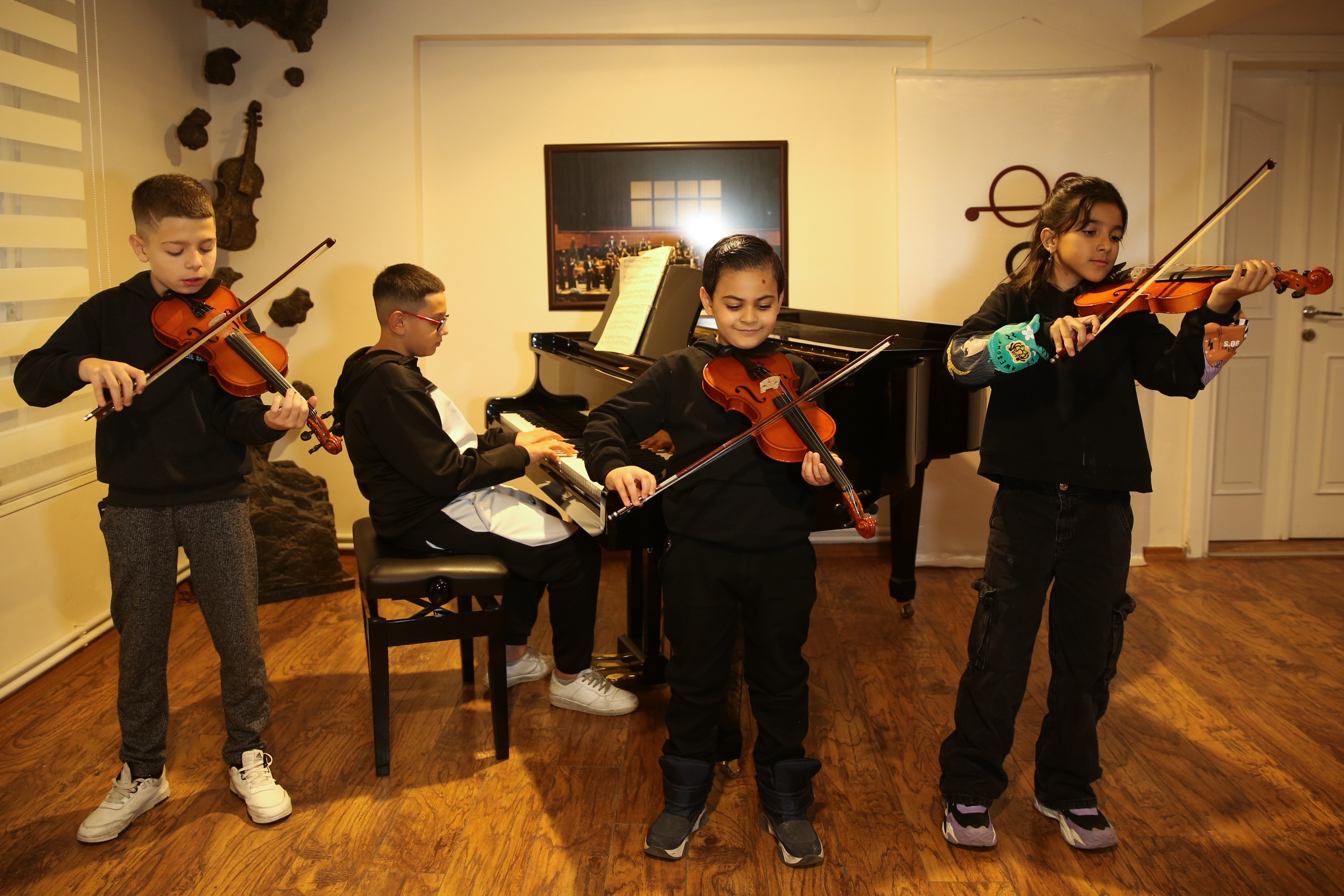 Olten Filarmoni’de piyano eğitimi alan 12 yaşındaki Muzaffer Emre Gülgonca ise enstrümanla tanışma hikayesini ve hayallerini şu ifadelerle aktardı: “Ağabeyim çalmaya başlamıştı önce. Ben de onu gördüm ve çok heveslendim. Bana da öğretmesini istedim. Mahallede ders almaya başladım ve piyanoyu çok sevdim. Burası bence çok güzel ve buraya devam etmek istiyorum. Hayallerim müzisyen olmak, işe gitmek ve aileme bakmak.”