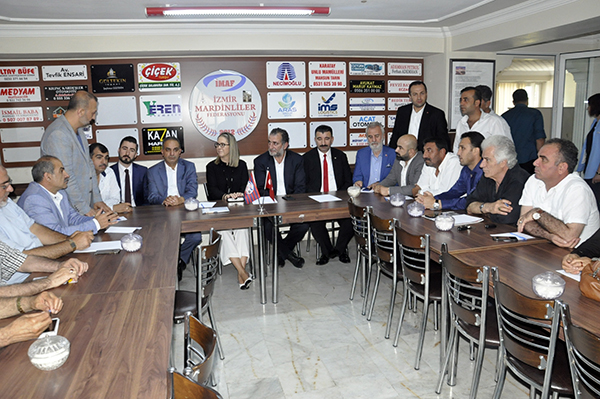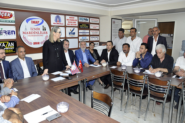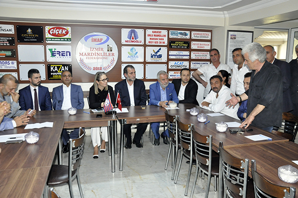 İlk Olarak İzmir Mardinliler Federasyonu’nu ziyaret eden Çankırı, federasyon Başkanı Ahmet Tunç tarafından kapıda karşılanırken, federasyon üyeleri ise tek tek sevgi gösterinde bulundu. Yapılan ziyarette ilk olarak konuşma yapan Anıttepe Köyü Sosyal Yardımlaşma ve Dayanışma ve Derneği Başkan Yardımcısı İbrahim Kılınç, Mardin milletvekilinin İzmir’den aday gösterilmemesinin kendilerini onure ettiğini ifade ederek, “Bizim ana konumuz Mardin’dir. Her ne kadar İzmir’de de olsak burada bir Mardinli vekilin görev alması bizleri mutlu edecektir. Biz bunu hep dile getirdik ve bugün 9 tane aday adayı arkadaşımız partimize müraacat edip bugün bakıyorsunuz ki Mardin’den buraya sizi göndermesi bizi onure etmiştir. Burası sizin evinizdir. Sizlere çok teşekkür ediyoruz. Bölünmez ailesi denildiği Mardin’de ne demek olduğunu zaten biliyoruz.