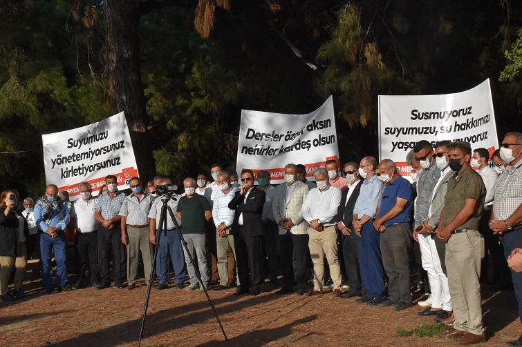 “Dereler özgür aksın, nehirler kardeş olsun”, “Suyumuzu yönetemiyorsunuz, kirletiyorsunuz”, “Susmuyoruz, suyumuzu, su hakkımızı savunuyoruz” pankartlarının açıldığı ve birçok çiftinin de tepkilerini göstermek için hazır bulunduğu basın toplantısında ilk açıklamayı CHP Menemen İlçe Başkanı Turan Erdoğan yaptı. Erdoğan konuşmasında, “401 kilometrelik Gediz Nehri’nin, Murat Dağı’ndaki kaynağından Ege Denizi’ne dökülene kadarki yolculuğu Menemen’e ulaştığında Gediz’in tahlil yapmaya bile gerek duyulmayacak kirliliğe ulaştığını görmekteyiz. Gediz’den beslenen havzadaki yer altı suları ve bu nehrin suyuyla sulanan tarım arazilerindeki kirlenme nedeniyle yöredeki tüm canlıların da yaşamı tehlike altındadır. Bu arazilerde yetişen sebze ve meyveleri tüketen insanların ciddi sağlık sorunlarıyla yüz yüze oldukları ya da olacakları da kaçınılmazdır. Bu kirliliğin önünü açan iktidarın rantçı politikaları ile faaliyetlerine izin verilen, arıtması olmayan, olsa da çalıştırmayan sanayi kuruluşlarıdır, kentsel atıklardır, madenlerdir. Su kaynaklarımızın karşı karşıya olduğu çevresel risklerin yönetilemediğini görmekteyiz. Cumhuriyet Halk Partisi olarak çiftçiyi ve tarımı yok sayan bu politikalarınızın her zaman karşısında olacağız” dedi.