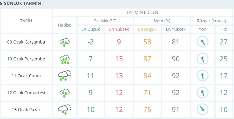 Parçalı zamanla çok bulutlu, akşam saatlerinden sonra sağanak ve yer yer gök gürültülü sağanak yağışlı geçeceği tahmin ediliyor. Yağışların gece saatlerinden sonra yerel olarak kuvvetli olması bekleniyor.