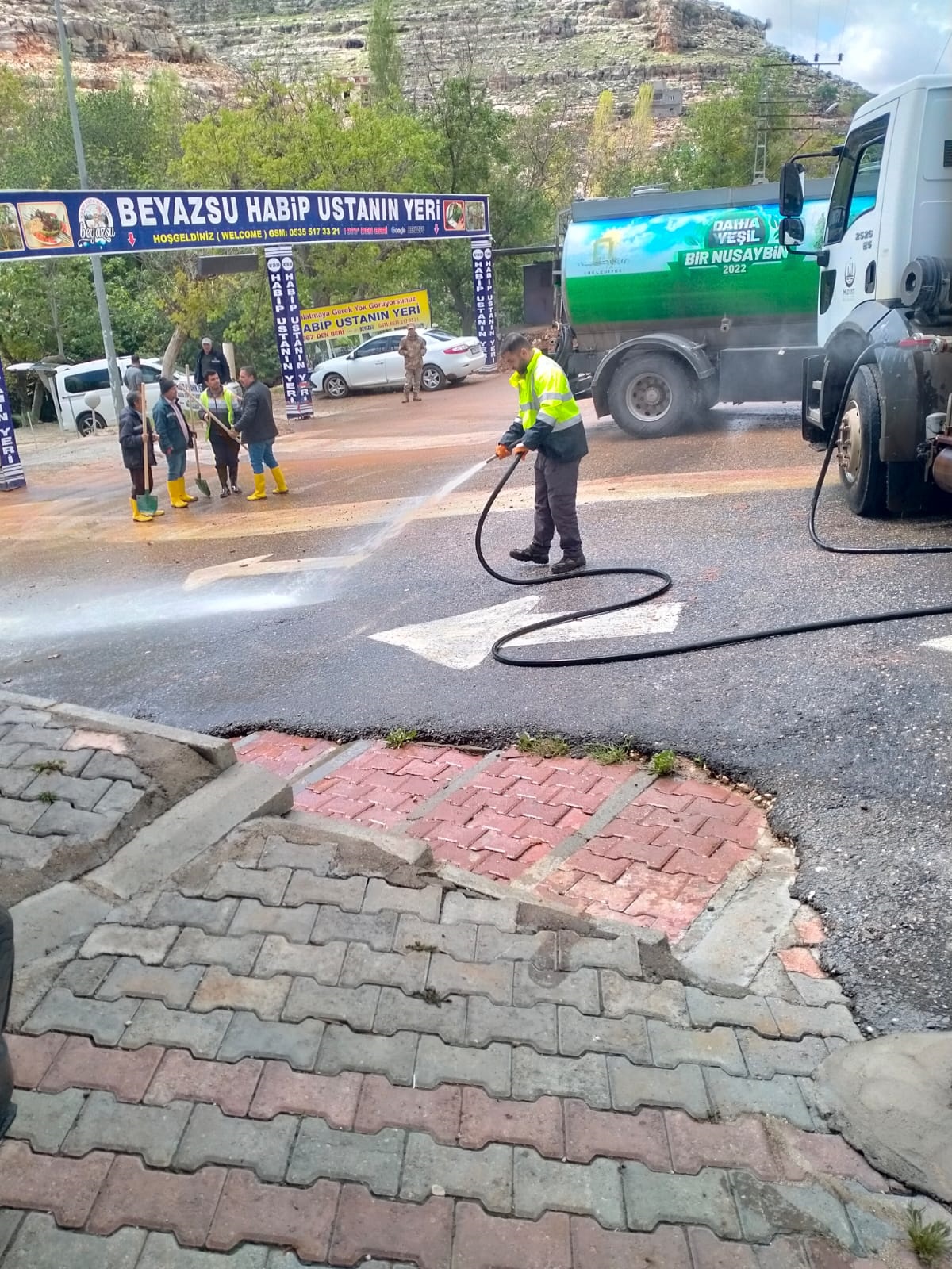 Midyat Belediyesine bağlı Fen İleri ile Temizlik İşleri Müdürlüğüne bağlı ekipler, olayın yaşandığı ilk andan itibaren Beyazsu’da çalışmalarına başladı.