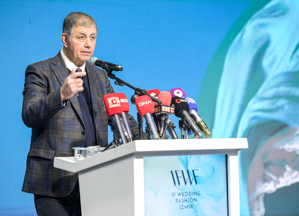 İzmir’in sektördeki rolüne de dikkat çeken Başkan Tugay, “Gururla ifade etmeliyim ki İzmir, bu sektörün sadece Türkiye’deki lokomotifi değil, aynı zamanda küresel bir üretim merkezidir. Ülkemizdeki gelinlik üretiminin yüzde 70’i, bini aşkın firmamızın alın teriyle güzel İzmir’imizde gerçekleştiriliyor. Avrupa’dan Orta Doğu’ya, Amerika’dan Asya’ya kadar dünyanın dört bir yanındaki gençlerin en mutlu günlerine İzmir imzası atılıyor. On binlerce hemşehrimize aş ve iş imkânı sağlayan bu büyük ekosistemi korumak ve büyütmek hepimizin önceliği olmalıdır” ifadelerini kullandı.