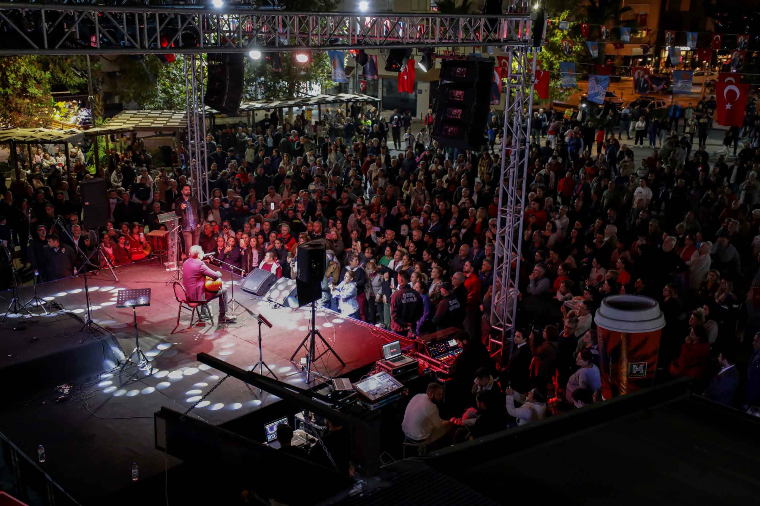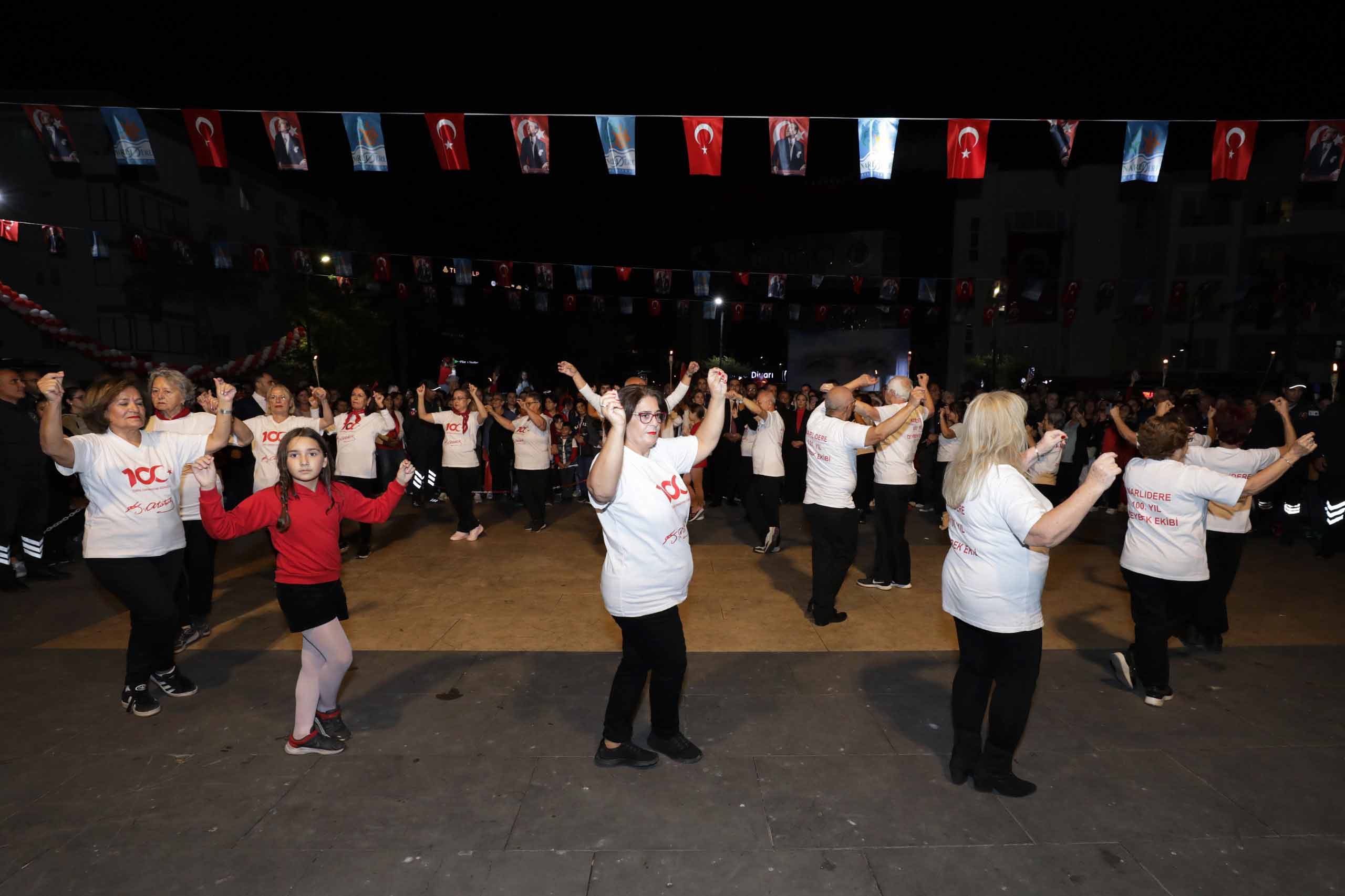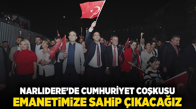 Saatler 19.00’u gösterdiğinde fener alayı ve kortej yürüyüşü başladı. Cumhuriyet sevdalısı Narlıdereliler, ellerinde Türk bayraklarıyla sokakları adeta gelincik tarlasına dönüştürdü. Narlıdere Belediye Başkanı Erman Uzun’un da yer aldığı fener alayı ve kortej yürüyüşü, Dokuz Eylül Üniversitesi eski Güzel Sanatlar Fakültesi önünde başlayarak Demokrasi Meydanı’na kadar sürdü. Demokrasi Meydanı’ndaki program Narlıdere 100. Yıl Zeybek Ekibi’nin gösterisi ile başladı. Sonrasında, Narlıdere Belediye Başkanı Erman Uzun günün anlam ve önemine binaen bir konuşma yaptı. Başkan Uzun’un konuşması sona erdiğinde müzik grubu Moli sahneye çıktı. Moli, birbirinden güzel Karadeniz türkülerini sahneye taşıdı. Moli’nin ardından Türk Halk Müziği Sanatçısı Tolga Sağ, Narlıdereliler ile buluştu. Türk Halk Müziği’nin en sevilen türkülerini seslendiren Tolga Sağ’a vatandaşlar hep bir ağızdan eşlik etti. Moli ve Sağ, Narlıderelilere adeta müzik şöleni yaşattı. Yoğun ilgi gören etkinlikler çiçek takdimi ile sona erdi.