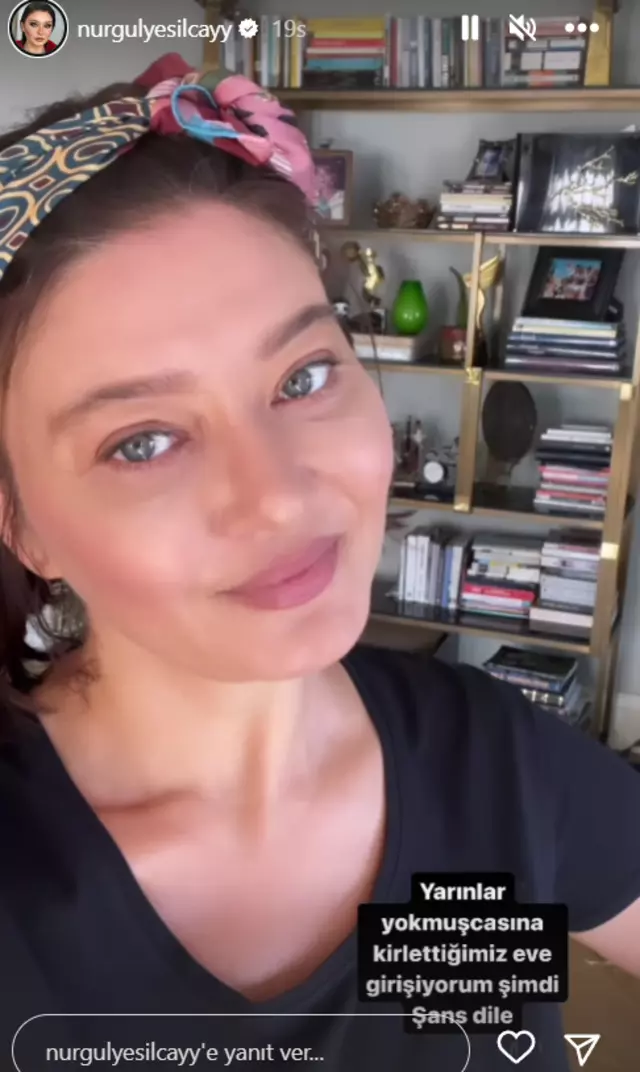 "Yarınlar yokmuşçasına kirlettiğimiz eve girişiyorum" diyen güzel oyuncu takipçilerinden kendisine şans dilemelerini istedi.