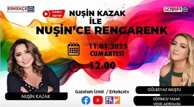 Gazetem İzmir TV ekranlarında yayınlanan ve Nuşin Kazak’ın sunduğu Nuşin’ce Rengarenk programında bu hafta, Vedik Astroloji uzmanı ve yazar Gülbeyaz Muştu konuk oldu. Keyifli ve bilgi dolu geçen programda, izleyicilere Vedik Astroloji’nin detayları aktarıldı.
