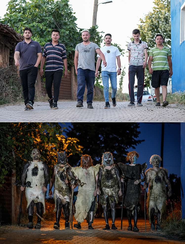 İlçeye bağlı kırsal Şehriman Mahallesi'nin sakinleri, Kurban Bayramı'nda kestikleri hayvanlardan çıkan deri, kelle, kuyruk, boynuz ve kemikleri kostüm haline getiriyor.