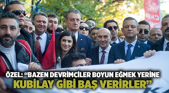 Menemen Olayı’nın tarihteki yerine değinerek ve önceki gün Türkiye gündemine düşen şehit haberlerine parantez açarak konuşmasına başlayan CHP Genel Başkanı Özgür Özel “Böyle anlamlı günlerde, özellikle devrimlere sahip çıkmanın sembolü olmuş yıldönümlerinde ya da büyük acıların anma törenlerinde var olmaya devam edeceğim. Menemen’de Atatürk’e isyan bayrağı açtılar. Asteğmen Kubilay görmezden gelmedi. Geri adım atmadı. Eğer o hainlere karşı başını eğseydi bu ülkenin bağımsızlığı için üzerine düşeni yapamayacaktı. Bazen devrimciler boyun eğmek yerine Kubilay gibi baş verirler. Geçmişte Menemen’de çok coşkulu törenler olurdu, şimdi giriş sayısı sınırlandı dediler. Ben CHP’lilerin bugün ne yapacağından emindim. Ne törende 10 kişiyiz ne de bu tepede birilerinin umduğu gibi yalnızız. Gözün alabildiği her yerde ve bu meydana sığmayan yerlerde Atatürkçüler varsa umut var. Umut cumhuriyettedir. Umut bizdedir. Çağrılın çağrılmayın gücümüzü göstermemiz gereken her yerde hep birlikte mücadele etmeye var mıyız? Hep birlikte başaracağız. Biz çokuz ve birlikte kazanacağız” dedi.