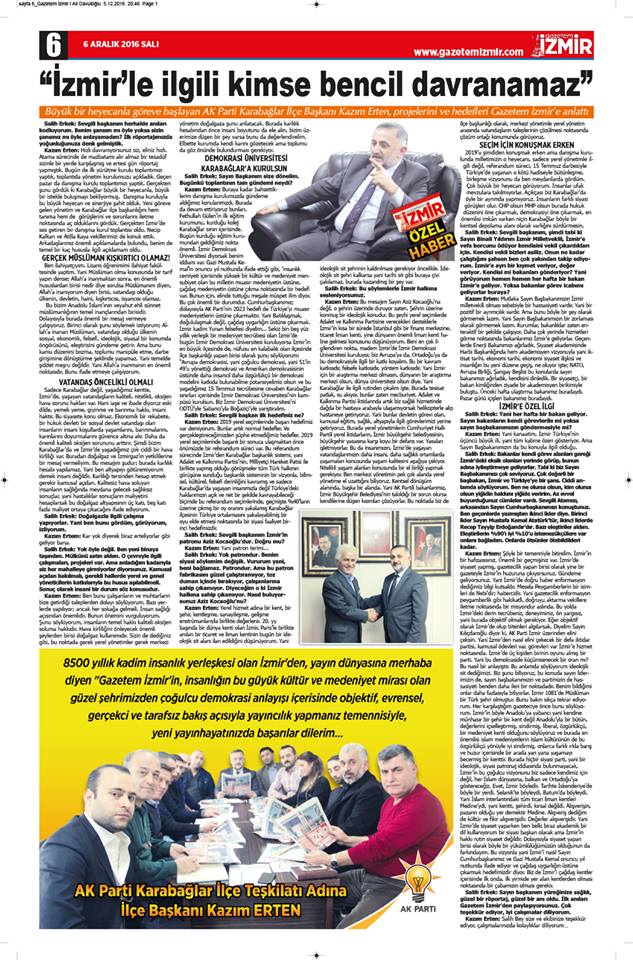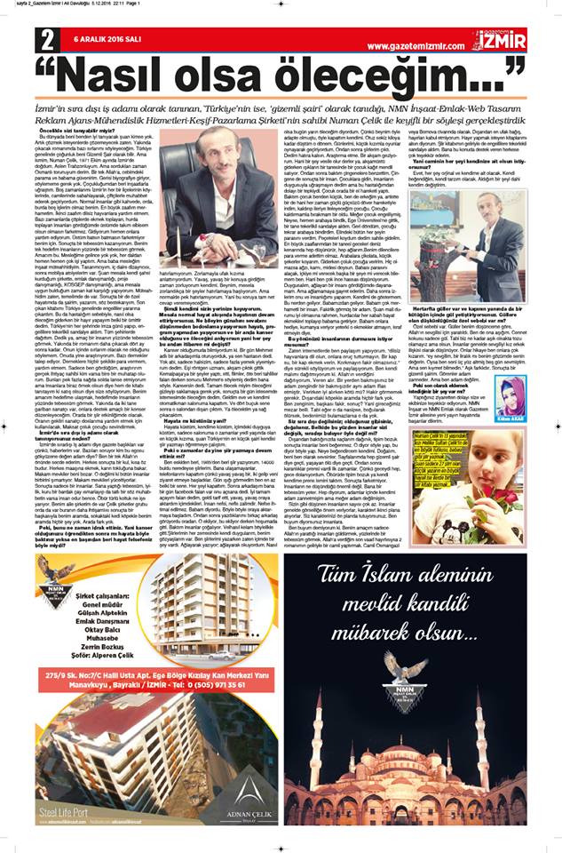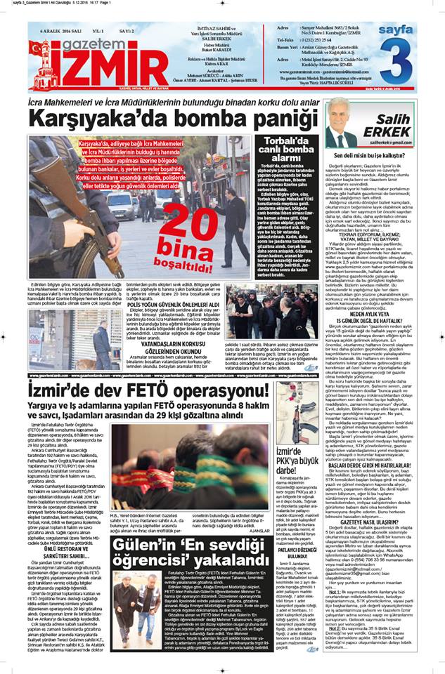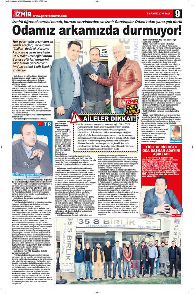 Not 2: Bu sayımızda 35 S Birlik Esnaf Derneği’ne yer verdik. Gazetemizin kapısı bütün derneklere açıktır. 35 S Birlik Esnaf Derneği’ni yapıcı oluşumlarından dolayı tebrik ediyorum…