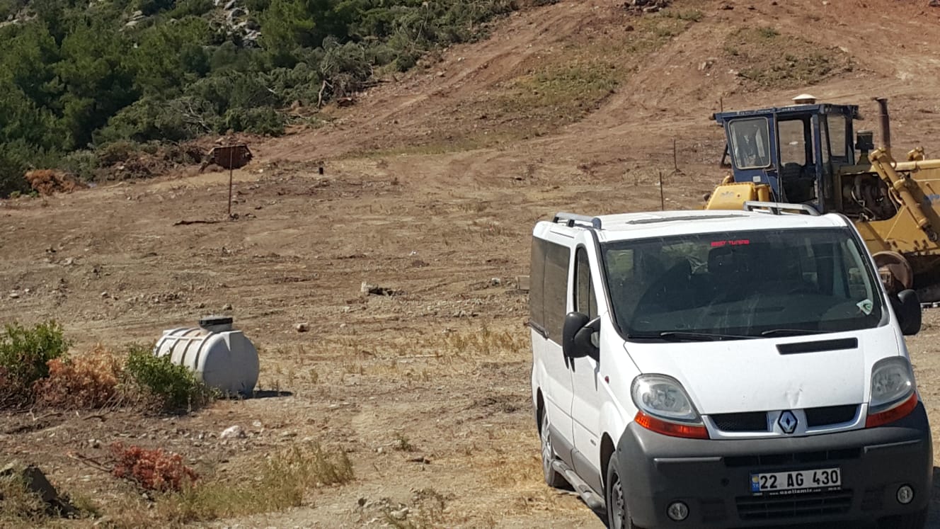 Karaburun Küçükbahçe Mevkii yolu üstünde Karareis Mevkii’nde yaşanan katliamda yıllanmış ağaçlarla beraber boy vermiş ağaç yavruları ve yeşil alan ‘yok’ edildi.