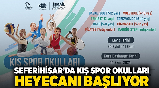 Seferihisar Belediyesi spor okulları Seferihisarlı çocuklara tüm sene boyunca yeteneklerini çeşitli spor dallarında keşfetme imkanı sağlıyor. Yaz Spor okulu ile 12 branşta ve uzman eğitmenler eşliğinde 800 adet çocuğa hizmet veren spor okulları yeni dönemde ‘’Kış Spor Okulları’’ olarak faaliyetlerine devam ediyor.
