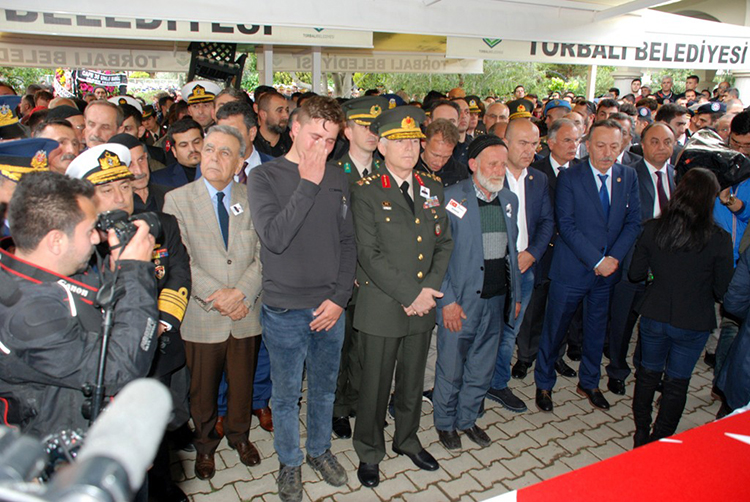 Mümin Mesci Camisi'nde düzenlenen törene İzmir Valisi Erol Ayyıldız, İzmir Büyükşehir Belediye Başkanı Aziz Kocaoğlu, Ege Ordu ve Garnizon Komutanı Org. Abdullah Recep, İl Emniyet Müdürü Hüseyin Aşkın, İl Jandarma Komutanı Albay Hasan Koçyiğit, AK Parti İzmir Milletvekili Mahmut Atilla Kaya, Torbalı Belediye Başkanı Adnan Yaşar Görmez, MHP İl Başkanı Necat Karataş, CHP İl Başkanı Asuman Ali Güven, CHP İzmir Milletvekili Tacettin Bayır yakınları ve çok sayıda vatandaş katıldı. Ayakta durmakta zorluk çeken şehidin ailesini yakınları ile askerler teskin etti.