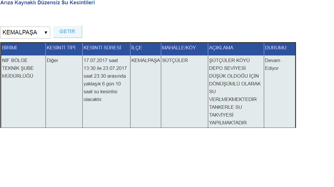 İzmir'in Kemalpaşa ilçesi Sütçüler Köyü kavurucu yaz sıcaklarında susuzluğa mahkum oldu. 2 aydır susuzluk çeken Sütçüler sakinleri, İzmir Büyükşehir Belediyesi'ne sorunu defalarca bildirmelerine rağmen yaşadıkları sorunun çözülmediğini belirtti. Köyde neredeyse her gün su kesintisi yaşandığını söyleyen vatandaşlar, "Sular bir iki saat geliyor sonra tekrar kesiliyor. 2 aydır aynı. Defalarca sorunu iletmemize rağmen hiçbir sonuç alamadık. Yetkililer sesimizi duysun bizi bu sıkıntıdan kurtarsınlar" diye konuştu.