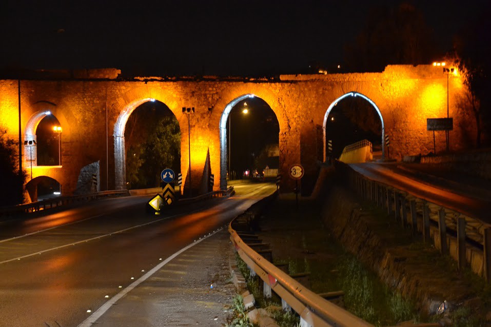 İzmir'de, kentin en önemli figürleri arasında yer alan tarihi su kemerleri, üst üste meydana gelen hırsızlık olayları nedeniyle karanlığa gömülürken, hırsızlarla mücadele eden İzmir Büyükşehir Belediyesi, direklere döşenen elektrik tesisatlarıyla kemerleri yeniden aydınlattı.
