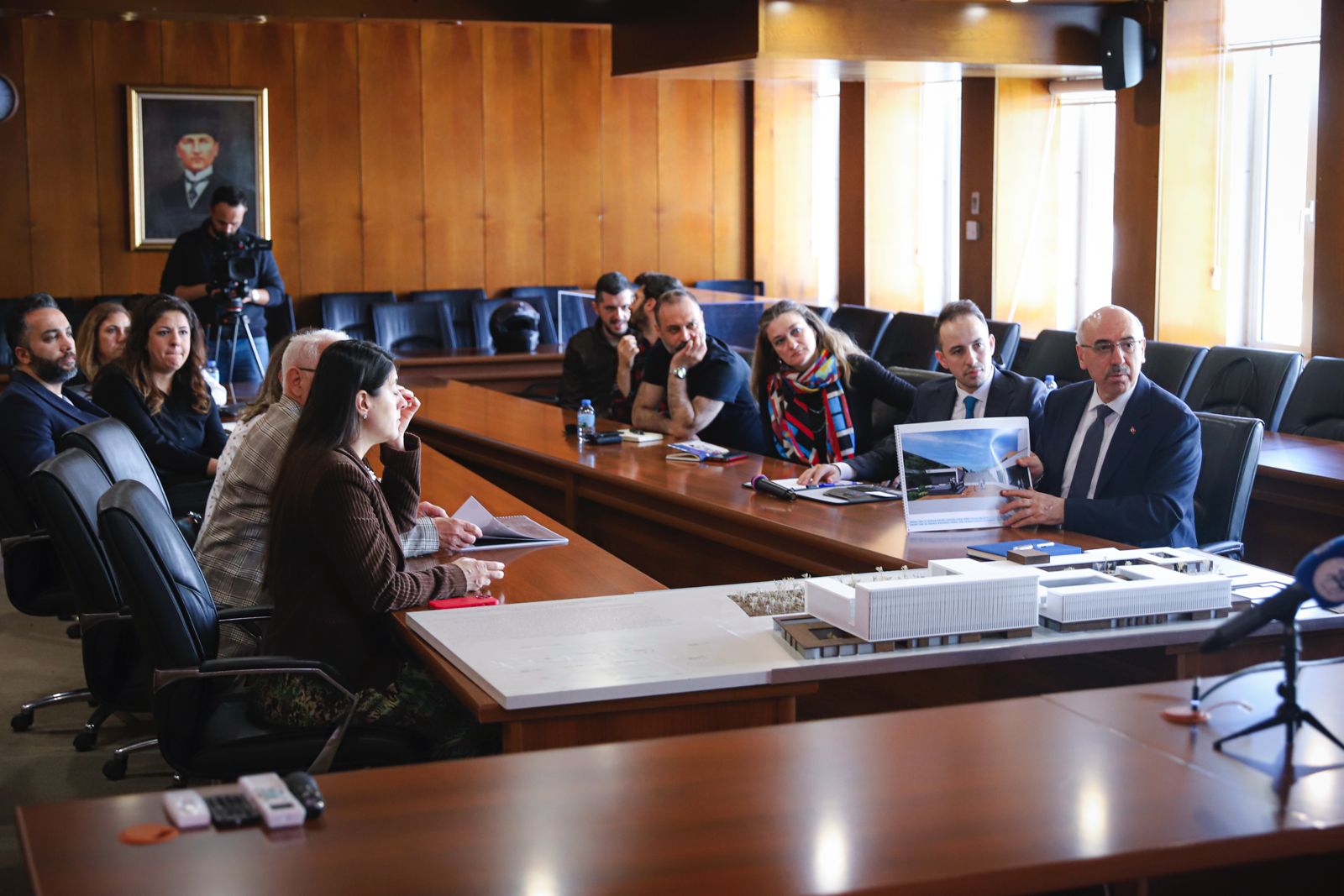DEÜ’nün Türkiye’nin köklü eğitim merkezlerinden olan Güzel Sanatlar Fakültesi ile Devlet Konservatuvarının kısa zamanda inşasına başlanarak tamamlanacağını belirten DEÜ Rektör Vekili Prof. Dr. Mahmut Ak, “Üniversitemizin Güzel Sanatlar Fakültesi ve Devlet Konservatuvarına ait binaların 6306 Sayılı Kanun Uyarınca Riskli Yapı Analizleri yapılmış ve mevcut binalardan sadece ‘C Blok’ riskli bulunmamış, riskli bulunan diğer binalar kontrollü bir şekilde yıkılmıştı. Ülkemizin birbirinden değerli bu iki eğitim yuvasının yeni binalarının tasarım projelerini görüştüğümüz Rektörlük binamızdaki toplantıdan güzel sonuçlar çıktı. Projeye ilişkin son düzenlemeleri de masaya yatırdığımız toplantıda, bina planlarımızı tüm boyutlarıyla değerlendirdik. Son haline gelen planların yapımına en kısa sürede başlanacak ve tamamlanan binalarımızda eğitim-öğretim faaliyetleri kaldığı yerden devam edecek. Güzel Sanatlar Fakültemiz ve Konservatuvarımızın yeni binaları, keskin çizgilerle birbirinden ayrılmayacak yapıda olacaklar. Son derece modern ve geçirgen yapıya sahip binalar, disiplinler arası çalışmaların bir arada yürütülmesini sağlayacak” dedi.