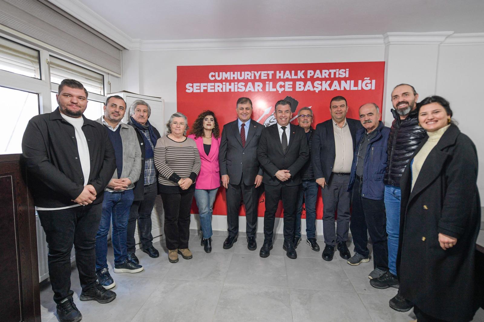 Başkan Tugay, toplantının ardından Cumhuriyet Halk Partisi Seferihisar İlçe Başkanlığı'nı ziyaret etti. Tugay'ı CHP Seferihisar İlçe Başkanı Rahmi Tezel Çınar ile ilçe örgütü karşıladı.