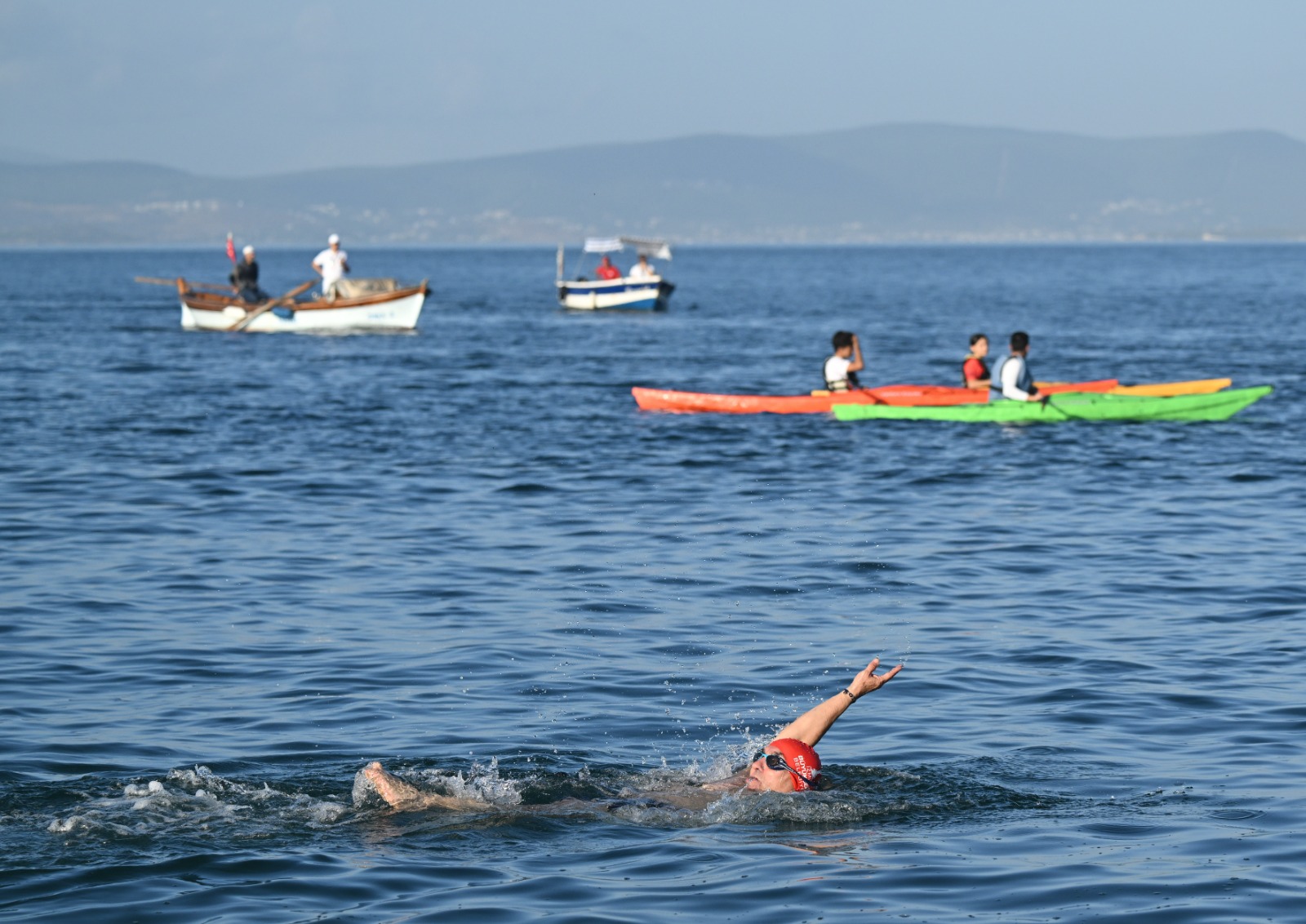 Güzelbahçe Maltepe’de düzenlenen açık yüzme yarışında Başkan Soyer ile birlikte İZSU Genel Müdürü Ali Hıdır Köseoğlu da Körfez’de yüzerek sporculara destek oldu. Bugüne kadar İzmir Körfez Festivali kapsamında yapılan yüzme yarışması iç Körfez’e en yakın noktada düzenlendi. Güzelbahçe’nin ardından açık su yüzme yarışının bir sonraki yıl Narlıdere’de yapılması planlanıyor.