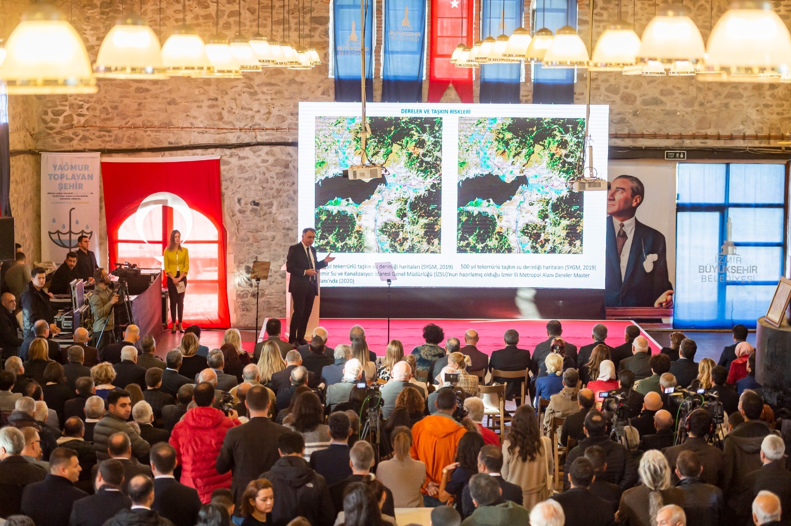 Türkiye’nin en kapsamlı yağmur suyu hasadı ile yeşil dönüşümü esas alan projenin anlatıldığı toplantıya İzmir Büyükşehir Belediye Başkanı Tunç Soyer’in eşi ve Köy-Koop İzmir Birlik Başkanı Neptün Soyer, Konak Belediye Başkanı Abdül Batur, Karşıyaka Belediye Başkanı Cemil Tugay, Güzelbahçe Belediye Başkanı Mustafa İnce, İzmir Büyükşehir Belediyesi’nin bürokratları, muhtarlar, apartman ve site yöneticileri, mülk sahipleri, resmi ve özel okulların temsilcileri katıldı.