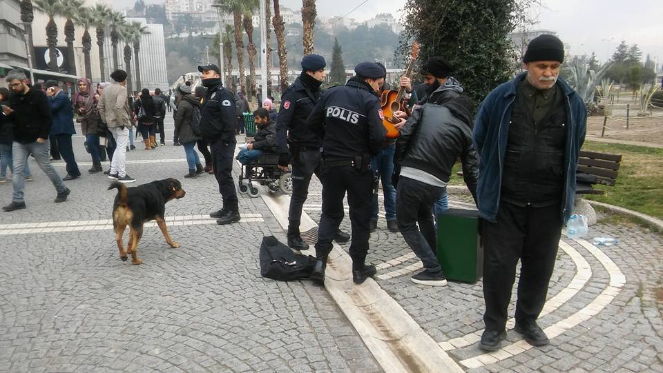 Konak YKM önünde üç genç gitarla müzik yapıyor ve Kürtçe türküler söylüyor, bu türküler eşliğinde orada bulunan bir grupta halay çekiyor. Hatta halayı izleyen kalabalığın içindeki bir turist de dayanamıyor ve halaya giriyor. Toplanan kalabalıkta halayı keyifle seyrederken birden 3 polis geldi, gençlere "müziğe durdurun, ve kimliklerinizi verin" dedi. Halay çekenlere ve halayı seyir edenlere de "Dağılın" diye bağırıp kalabalığı dağıttı. Orada çoğu kez her türden müzik icra edenleri görüyoruz, Kürtçeye tahammülsüzlük niye? Hani hoşgörü vardı, hani demokrasi vardı, hani kardeştik. Her kürdü terörist gibi görme yanlışlığına düşmemeliyiz. Zaten bizi karıştıranların sahneye koymaya çalıştığı senaryoda Türk-Kürt, Sunni-Alevi gibi bizi ayrıştırıp birbirimize düşürmek. Buna alet olmadan birliğimizi, bütünlüğümüzü dünden daha sıkı bir biçimde korumalıyız. Devletin resmi yayın organı TRT KÜRDİ kanalı varken bu uygulamaya nasıl bir anlam vermeliyiz? Bence talihsiz müdahale. Bir ayrıntıyı da paylaşmalıyım. Polis müdahalesi ile birlikte bıyıklarını siyaha boyamış yaşlı bir provokatör halay çeken kızları da gözaltına alın diye polislere akıl vermeye çalışıyordu. Sağduyu ve hoşgörüyü kaybetmemeliyiz. Aksi takdirde karanlık ve kanlı günlerin içinde buluruz kendimizi ve geri dönüşümüz hiçte kolay olmaz.