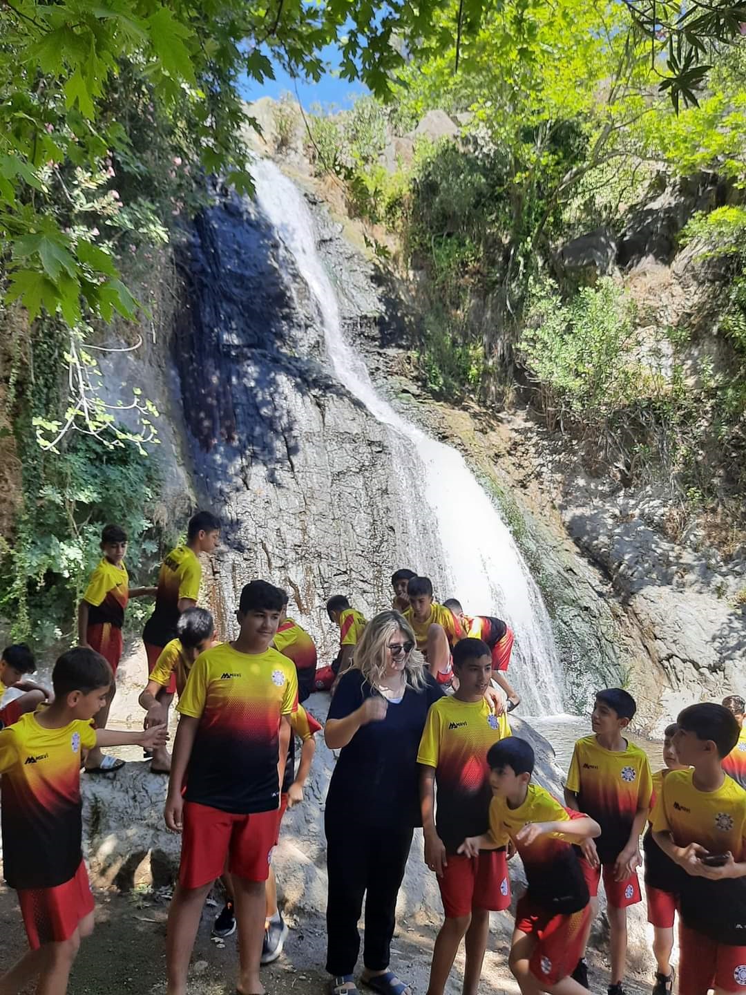 Tam şelalenin fotoğrafını çekiyordum ki köprünün üstünde otuz kırk tane yaşları sekiz ile ondört yaş arası olan,futbol forması giymiş çocukların arasında kala kaldım.