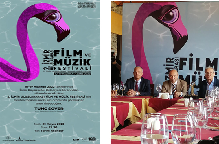 2023’deki ulaşılan proje hedeflerinin nabzını tutacağımız ve heyecan duyulan yeni proje adımlarını hissedeceğimiz, 2.İzmir Uluslararası Film ve Müzik Festivali, İzmir’in kurtuluşunun 100. Yıldönümü nedeniyle 100’ü aşkın uzun metrajlı film seyirci karşısına çıkacak. Direktörlüğü Vecdi Sayar tarafından yapılan festivalin açılışı 10 Haziran 2022 akşamı Ahmed Adnan Saygun Sanat Merkezi’nde Rengim Gökmen yönetiminde Ahmed Adnan Saygun Senfoni Orkestrası’nın seslendireceği Zülfü Livaneli film müzikleri konseri ile yapılacak.