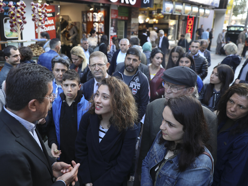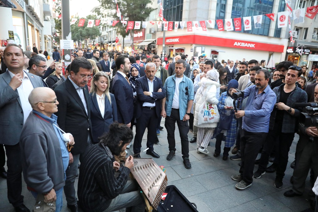 Çiğli’de katıldığı bir program sonrası Mavişehir’e geçen ve oradan İZBAN’a binen Zeybekci, görevliler ve yolcularla sohbet etti, sonra da Karşıyaka İstesyonu’nda indi. Karşıyaka’da istasyon çıkışından itibaren vatandaşların çevresini sararak, ilgi gösterdiği Zeybekci, AK Parti Karşıyaka Belediye Başkan Adayı Ayda Maç ile çarşıyı gezdi. Çarşıda müzik yapan gençlerin yanına giden Zeybekci, “Çanakkale” türküsüne de eşlik etti. Müzik yapan ve çarşıda kostümle dolaşan gençlerle sohbet eden Zeybekci, çarşıdaki esnafı dolaştı.